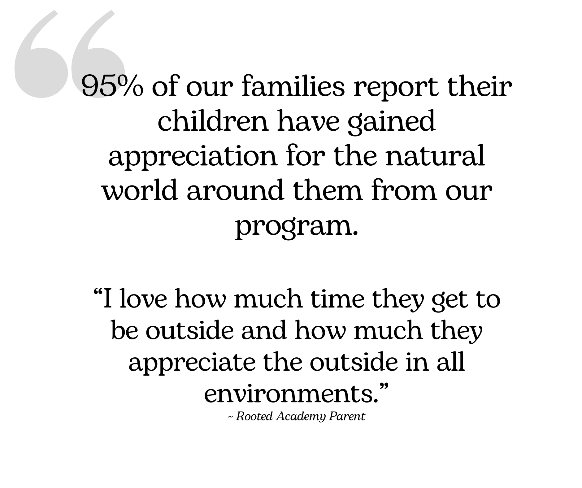Rooted Academy is suited best for 6.5-11 year olds. (first grade through 5th grade) Our Wild Seedlings program is ideal for 5-6.5 year olds and our Little Wild Roots program is ideal for 3-5 year olds.